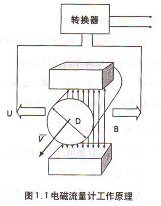在圖1.1中,當(dāng)導(dǎo)電流體以平均V(m/s)通過裝有一對測量電*的一根內(nèi)徑為D(m)的絕緣管子流動時,并且該管子處于一個均勻的磁感應(yīng)強度為B(T)的磁場中。那么,在一對電*上就會感應(yīng)出垂直于磁場方向和流動方向的電動勢(E)。由電磁感應(yīng)定律可寫做(1)式: