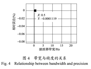 由圖4可知,當濾波器的通帶帶寬大于0.5Hz左右時,處理結果的相對誤差非常接近于零,而當帶寬小于0.5Hz時,濾波器的特性變壞,削弱了有用分量,使得相對誤差發生顯著變化。為了避免這個影響,選取濾波器的通帶帶寬應大于0.5Hz。
