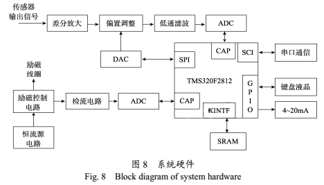 為了實現該算法,研制了基于DSP的電磁流量計系統,開發了電磁流量計系統軟件,對傳感器輸出信號進行實時處理 。
