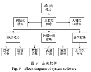 系統軟件設計采用模塊化設計方案,由主監控程序程序統一調用。軟件總體框圖如圖9所示。系統軟件包含的主要功能模塊有:初始化模塊、驅動模塊、數據處理模塊、通信模塊、看門狗模塊和人機接口模塊等。
