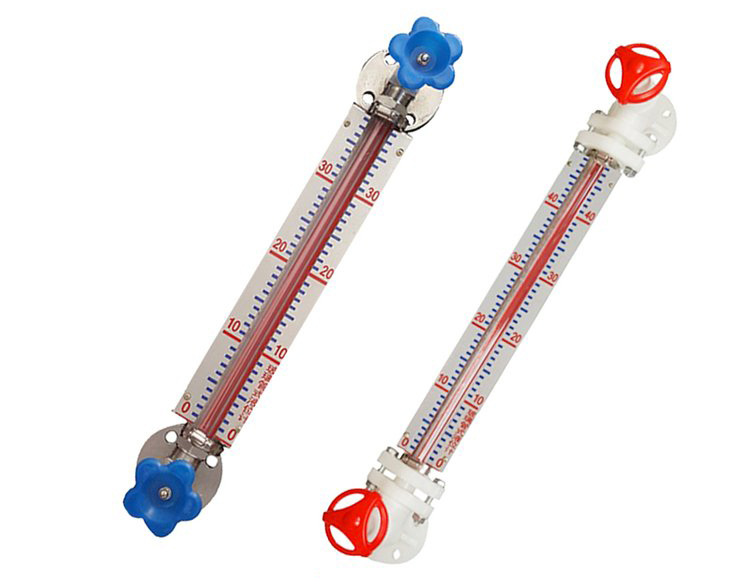 玻璃板、玻璃管液面計為直觀液位測量儀表,用來直接或間接地指示各種塔、罐、槽、箱等容器的液面位置(油、水、酸、堿、鹽等各種介質)儀表兩端各裝有一個針型閥,當玻璃管發生意外事故而破碎時,針型閥在容器壓力作用下自動關閉,以防止容器內介質繼續外流。