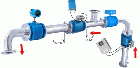 比較理想的安裝地點應(yīng)選擇測量點前后有足夠的直管段。進口直管段應(yīng)≥5D,出口直管段≥3D(D為傳感器公稱口徑)。