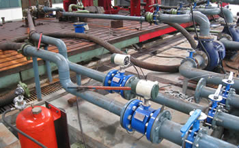 電磁流量計是由直接接觸管道介質的傳感器和上端信號轉換器兩部分構成。它是基于法拉*電磁感應定律工作的,用來測量電導率大于3μs/cm的導電液體的流量,是一種測量導電介質流量的儀表。除了可以測量一般導電液體的流量外,還可以用于測量強酸、強堿等強腐蝕性液體和均勻含有液固兩相懸浮的液體,如泥漿、礦漿、紙漿等。特別設計了帶背光寬屏的中.英文液晶顯示器,功能齊全實用、顯示直觀、操作使用方便,在滿足現場顯示的同時,還可以輸出4~20mA電流信號供記錄、調節和控制用,現已廣泛地應用于化工、環保、冶金、醫藥、造紙、給排水等工業技術和管理部門。