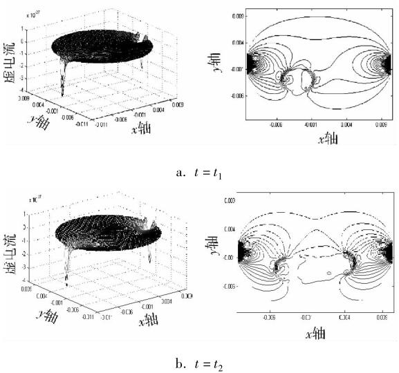圖1 油氣泡存在流量計中 x 方向虛電流分布情況
