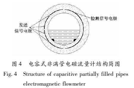 ②電容式非滿管煤漿流量計(jì)h。電容式非滿管煤漿流量計(jì)結(jié)構(gòu)簡(jiǎn)圖如圖4所示。、檢測(cè)信號(hào)電* 發(fā)送信號(hào)電