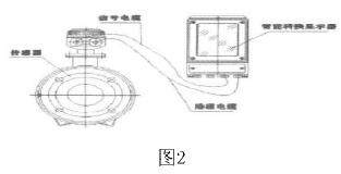 自來水廠電磁流量計是由流量傳感器和轉換器(也叫顯示器)兩大部分組成。測量管上下裝有激磁線圈,通激磁電流后產生磁場穿過測量管,一對電*裝在測量管內壁與液體相接觸,引出感應電勢,送到轉換器。激磁電流則由轉換器提供。如圖2所示: