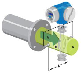 補水流量計根據法拉*電磁感應定律工作。根據該原理,當導電介質通過磁場B時,會產生電壓E,該電壓E與介質的速度v,磁場的密度和導體的長度成正比。
