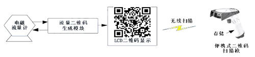 二維碼生成模塊定時向供熱補水流量計發送采集指令,后者收到指令后發送流量數據。