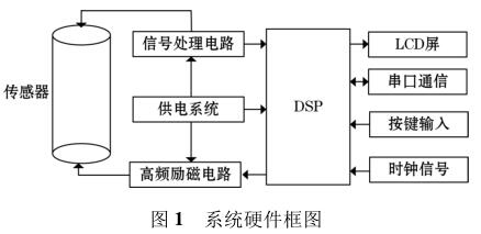 高頻勵磁智能分體式電磁流量計由傳感器、高頻勵磁電路、信號處理電路等組成,其中高頻勵磁電路決定著傳感器磁場的強弱,勵磁電路的穩定性以及精確性決定著系統檢測的準確性以及穩定性。DSP 系統控制勵磁電路激勵傳感器線圈,當線圈中有導電液體流過時,其切割磁感線并在傳感器兩端的線圈上產生感應電動勢,利用信號檢測電路監測感應電動勢的大小,*后根據相應關系計算出液體的流量,系統硬件框圖如圖 1 所示。