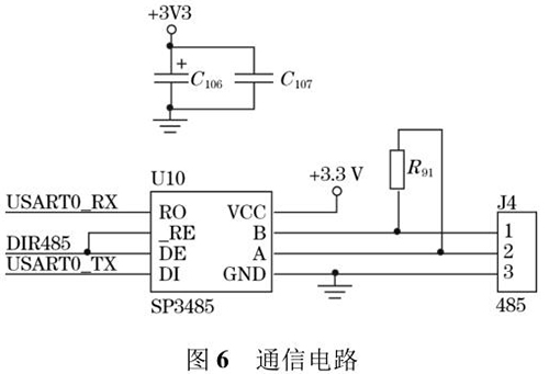 智能分體式電磁流量計輸出的流量值可以通過外接的 TFTLCD 屏直接顯示,還可以通過預留的 RS485 通信接口將數據發送到上位機中。RS485 電路*大的優點是 485 電平與 TTL 電平兼容,方便與 TTL 電路相連;抗共模干擾能力強;數據傳輸速度快,高達 10 Mbps;通信距離遠,*大為 1.2 km。系統采用 SP3485 芯片進行數據通信,SP3485 是一款低功耗芯片且符合RS485 協議的收發器,電路圖如圖 6 所示。