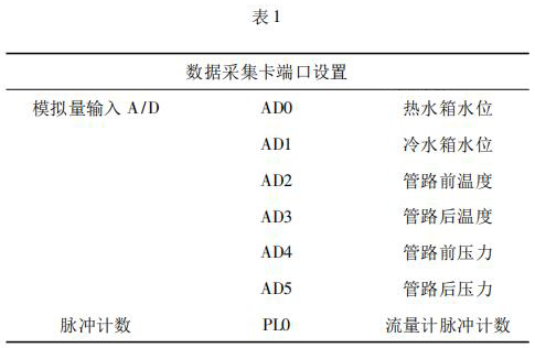 數據采集系統由工控機、分體式污水流量表以及數據采集卡組成。 4000 次冷熱沖擊試驗要求在在*大流量 qs 條件下運行,對流量數據的采集用到分體式污水流量表及數據采集卡。分體式污水流量表采集管路流量,數據采集卡將分體式污水流量表采集到的數據反饋給工控機系統。過程中,試驗管路水溫以及水箱水位的采集控制也是通過數據采集卡反饋給系統控制。試驗過程用到的數據采集卡采用研華生產的PCI - 1711。PCI - 1711 是一款多功能 PCI 總線數據采集卡,具有 16 路單端模擬量輸入功能、2 路 12位模擬量輸出功能、16 路數字輸入和 16 路數字輸出功能、計數器功能等。為保證冷熱沖擊試驗結果的準確性,嚴要求嚴格控制管路流量以及管路壓力。因此,管路設置前后管路溫度、冷熱水箱水位以及管路壓力的采集,管路流量根據分體式污水流量表脈沖計數進行采集,其數據采集卡端口設置如表 1 所示。