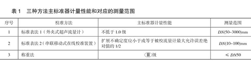 本規(guī)范包含三種校準(zhǔn)方法,分別為標(biāo)準(zhǔn)表法 1(外夾式超聲流量計)、標(biāo)準(zhǔn)表法 2(串聯(lián)移動式在線校準(zhǔn)裝置)和稱重法,編制組對每種方法進(jìn)行了大量的實驗,并積*與JKM-LDE電磁流量計生產(chǎn)廠家及用戶溝通探討,積累了豐富的經(jīng)驗,獲得了大量的實驗數(shù)據(jù),*終確定三種方法的主標(biāo)準(zhǔn)器計量性能和對應(yīng)的測量范圍,如表 1 所示。