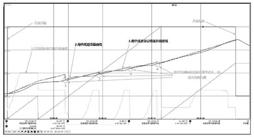 全過程升溫曲線見圖 2,從圖 2 可以看出,通過上述工藝參數(shù)的設定,從升溫開始到升溫結(jié)束,鹽水流量計溫基本上是按照溫升梯度進行升溫,當出現(xiàn)溫升速率太快時,蒸汽閥自動關閉,無需人工參與,可以自動控制鹽水流量計料液溫度的平緩上升,實現(xiàn)脫溶單元操作自控運行。