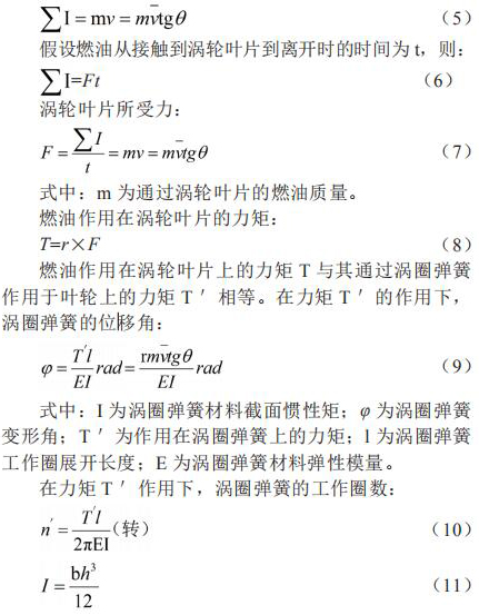 假設(shè)渦輪固定不動,燃油流過渦輪的葉片時(shí)將受到阻力,則當(dāng)燃油離開渦輪的葉片時(shí),將產(chǎn)生一個(gè)切向動量 mv,這個(gè)動量即為渦輪獲得沖量 。