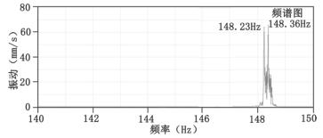 *后,通過對兩臺凝電磁流量計并列運行工況下的出口管道振動進行頻譜分析(見圖2)發現,葉片通過頻率附近出現了兩個相距很近的頻率,分別為148.23Hz和148.36Hz。這兩個頻率的振動分屬于兩臺凝電磁流量計所引發的,即兩臺凝智能電磁流量計工作轉速有微小差別,導致兩個頻率分量之間也出現了微小差別,進而導致拍振現象。