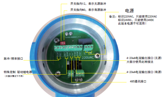 *二款:為藍色表頭,使用的也是比較廣泛的,算是*二代一體式電磁流量計,接線方法如下: