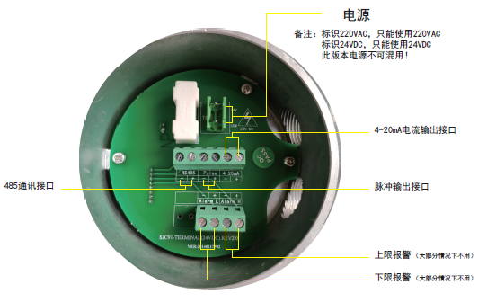 *一種:為黃色的表頭,這款是大泉流量新款的表頭,算是*三代一體式電磁流量計了吧,接線方法如下: