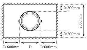 只有當(dāng)安裝空間不夠時(shí)(見(jiàn)下圖),小于DN200mm的管道可以選用V法安裝,大于DN200mm的管道可以選用平行插入超聲波流量計(jì)。
