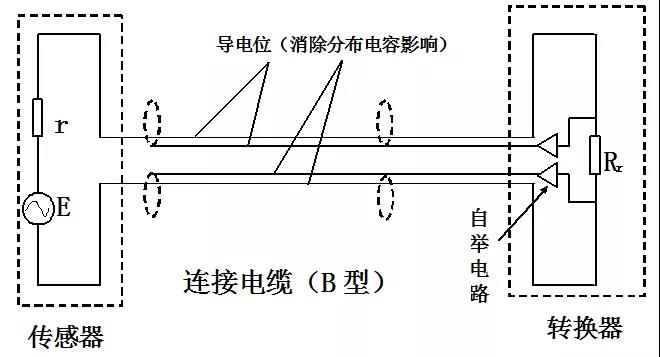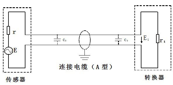 當(dāng)Ri>>r,C0(連接電纜二線間分布電容)很小時(shí),Ei≈E;當(dāng)介質(zhì)電導(dǎo)率很低,轉(zhuǎn)換器輸入電壓衰減Ei,而C0分布電容并聯(lián)效應(yīng)顯著,且波形發(fā)生畸變。當(dāng)被檢測(cè)介質(zhì)電導(dǎo)率低,傳感器與轉(zhuǎn)換器間距長(zhǎng)時(shí),使用多重屏蔽電纜的概率越高。