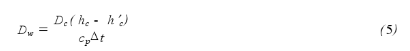 其中,Dw為冷卻水流量,t/s;Dc為汽輪機的排汽量,t/s;hc-h′c為1kg排汽在凝汽器中的放熱量,kJ/kg,其數(shù)值大小可由汽輪機的熱力試驗確定。通常,按照實用精確度的原則,hc-h′c可以認為是常量,對于中間再熱式汽輪機為2300kJ/kg,非中間再熱式汽輪機為2200kJ/kg;cp為冷卻水的比熱,kJ/kg·℃;Δt為冷卻水在凝汽器中的溫升,℃,其數(shù)值可以冷卻水入口及出口的溫度表記直接得到。