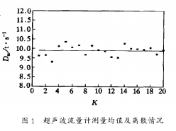 評價測量結(jié)果好壞的指標是其觀測數(shù)據(jù)精度的大小,亦即要求觀測結(jié)果的離散程度應該盡可能小。圖1、圖2分別表示對同樣運行工況下同時采用超聲波流量計和凝汽器熱平衡方法得到的冷卻水流量測量值及其相應的均值。其中,k為測量點數(shù)。